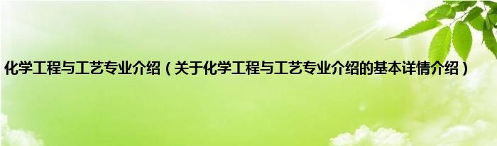 本文关于化学工程与工艺专业介绍的基本详情介绍就讲解完毕,希望对大家有所帮助。