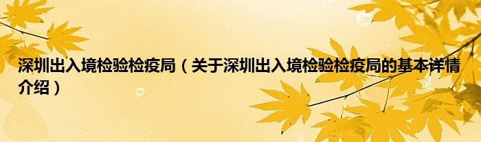 本文关于深圳出入境检验检疫局的基本详情介绍就讲解完毕,希望对大家有所帮助。