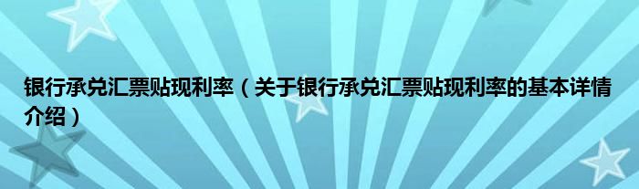 本文关于银行承兑汇票贴现利率的基本详情介绍就讲解完毕,希望对大家有所帮助。