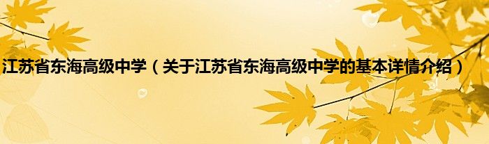 本文关于江苏省东海高级中学的基本详情介绍就讲解完毕,希望对大家有所帮助。