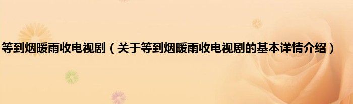 本文关于等到烟暖雨收电视剧的基本详情介绍就讲解完毕,希望对大家有所帮助。