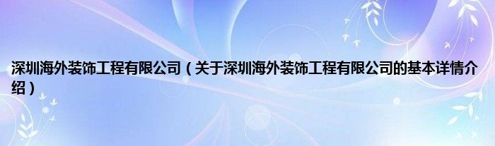本文关于深圳海外装饰工程有限公司的基本详情介绍就讲解完毕,希望对大家有所帮助。