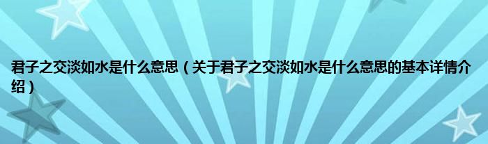 本文关于君子之交淡如水是什么意思的基本详情介绍就讲解完毕,希望对大家有所帮助。