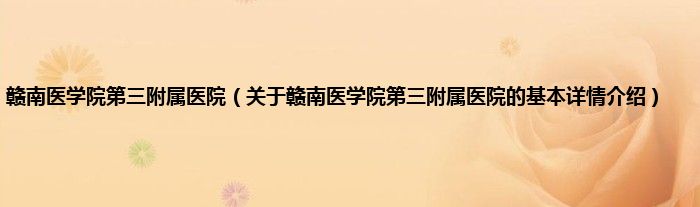本文关于赣南医学院第三附属医院的基本详情介绍就讲解完毕,希望对大家有所帮助。