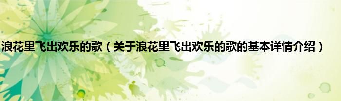 本文关于浪花里飞出欢乐的歌的基本详情介绍就讲解完毕,希望对大家有所帮助。