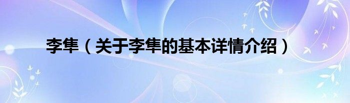 本文关于李隼的基本详情介绍就讲解完毕,希望对大家有所帮助。