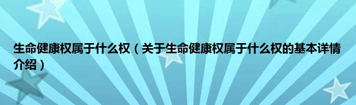 本文关于生命健康权属于什么权的基本详情介绍就讲解完毕,希望对大家有所帮助。
