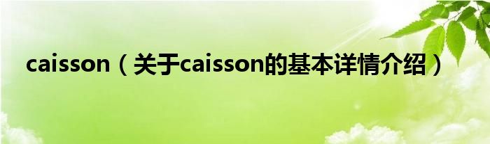 最佳答案大家好我是小蝌蚪,caisson,关于caisson的基本详情介绍很多人还不知道,那么现在让我们一起来看看吧!1、caisson,英语单词,主要用作名词。2、作名词时译为“人名;(法)凯松”。本文关于caisson的基本详情介绍就讲解完毕,希望对大家有所帮助。