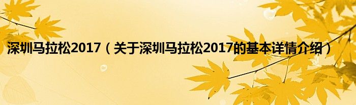 本文关于深圳马拉松2017的基本详情介绍就讲解完毕,希望对大家有所帮助。
