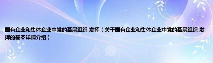 国有企业和集体企业中党的基层组织 发挥(关于国有企业和集体企业中党的基层组织 发挥的基本详情介绍)