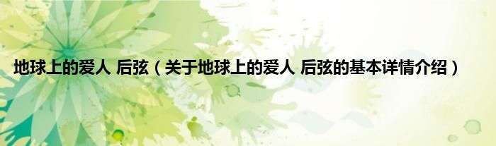 本文关于地球上的爱人 后弦的基本详情介绍就讲解完毕,希望对大家有所帮助。