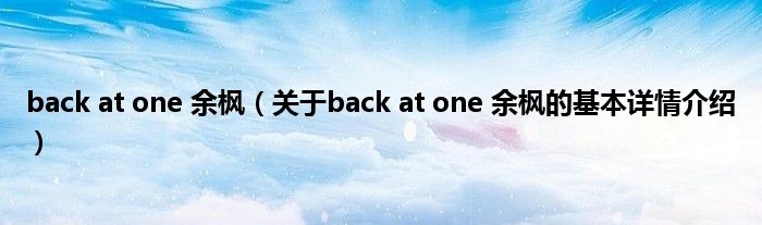 本文关于back at one 余枫的基本详情介绍就讲解完毕,希望对大家有所帮助。