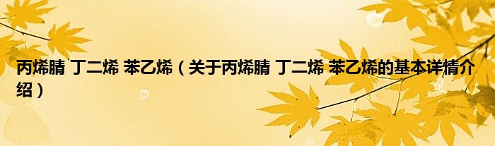 本文关于丙烯腈 丁二烯 苯乙烯的基本详情介绍就讲解完毕,希望对大家有所帮助。