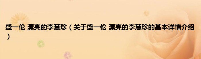本文关于盛一伦 漂亮的李慧珍的基本详情介绍就讲解完毕,希望对大家有所帮助。