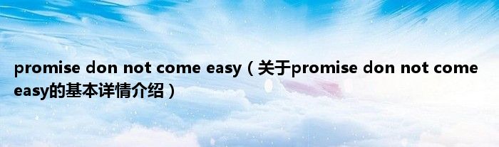 大家好我是小蝌蚪,promise don not come easy,关于promise don not come easy的基本详情介绍很多人还不知道,那么现在让我们一起来看看吧!