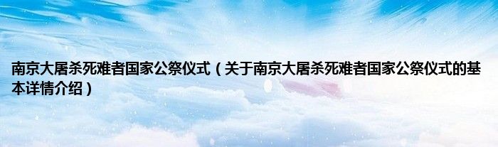 本文关于南京大屠杀死难者国家公祭仪式的基本详情介绍就讲解完毕,希望对大家有所帮助。