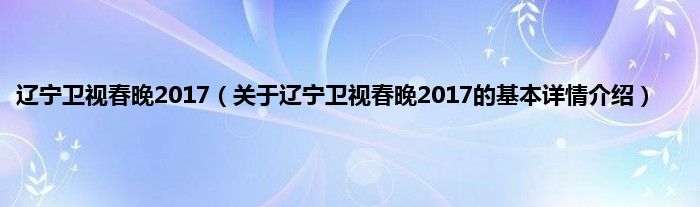 本文关于辽宁卫视春晚2017的基本详情介绍就讲解完毕,希望对大家有所帮助。