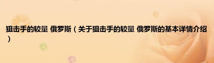 本文关于狙击手的较量 俄罗斯的基本详情介绍就讲解完毕,希望对大家有所帮助。