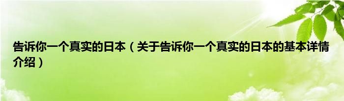 本文关于告诉你一个真实的日本的基本详情介绍就讲解完毕,希望对大家有所帮助。
