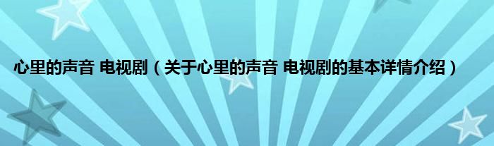 本文关于心里的声音 电视剧的基本详情介绍就讲解完毕,希望对大家有所帮助。