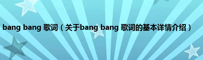 本文关于bang bang 歌词的基本详情介绍就讲解完毕,希望对大家有所帮助。