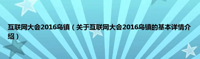 本文关于互联网大会2016乌镇的基本详情介绍就讲解完毕,希望对大家有所帮助。