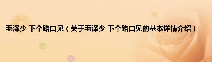 本文关于毛泽少 下个路口见的基本详情介绍就讲解完毕,希望对大家有所帮助。