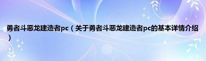 本文关于勇者斗恶龙建造者pc的基本详情介绍就讲解完毕,希望对大家有所帮助。