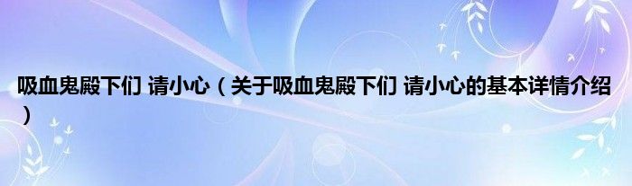 大家好我是小蝌蚪,吸血鬼殿下们 请小心,关于吸血鬼殿下们 请小心的基本详情介绍很多人还不知道,那么现在让我们一起来看看吧!