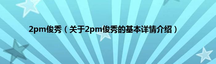 本文关于2pm俊秀的基本详情介绍就讲解完毕,希望对大家有所帮助。