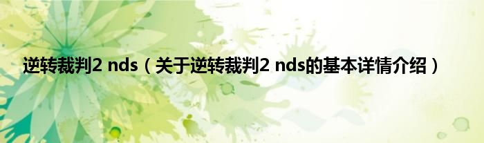 逆转裁判2 nds(关于逆转裁判2 nds的基本详情介绍)