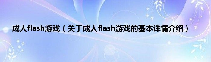 本文关于成人flash游戏的基本详情介绍就讲解完毕,希望对大家有所帮助。