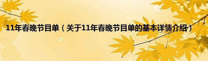 本文关于11年春晚节目单的基本详情介绍就讲解完毕,希望对大家有所帮助。