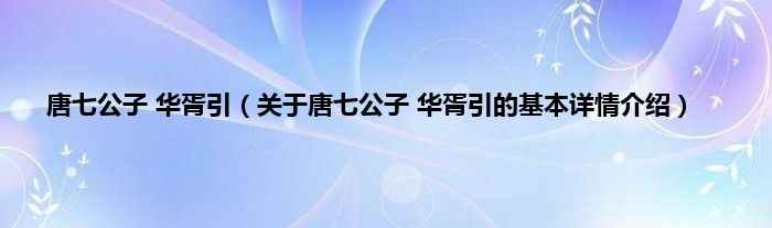 本文关于唐七公子 华胥引的基本详情介绍就讲解完毕,希望对大家有所帮助。