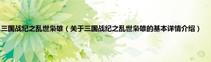 本文关于三国战纪之乱世枭雄的基本详情介绍就讲解完毕,希望对大家有所帮助。