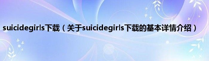 suicidegirls下载(关于suicidegirls下载的基本详情介绍)