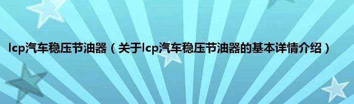 本文关于lcp汽车稳压节油器的基本详情介绍就讲解完毕,希望对大家有所帮助。