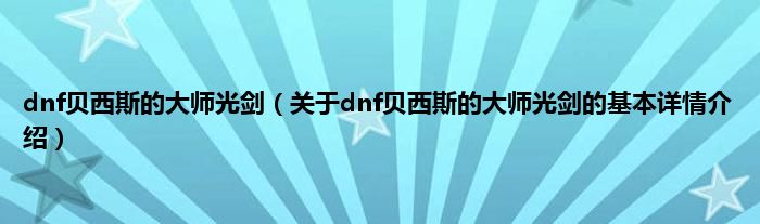 本文关于dnf贝西斯的大师光剑的基本详情介绍就讲解完毕,希望对大家有所帮助。