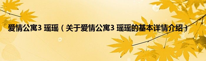 本文关于爱情公寓3 瑶瑶的基本详情介绍就讲解完毕,希望对大家有所帮助。