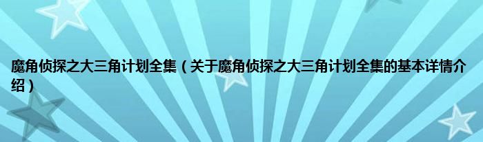 本文关于魔角侦探之大三角计划全集的基本详情介绍就讲解完毕,希望对大家有所帮助。