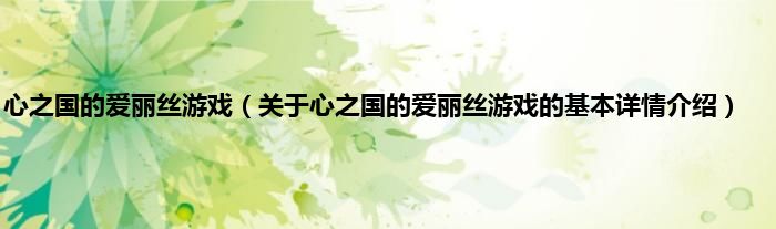 本文关于心之国的爱丽丝游戏的基本详情介绍就讲解完毕,希望对大家有所帮助。