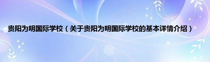 本文关于贵阳为明国际学校的基本详情介绍就讲解完毕,希望对大家有所帮助。