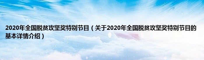 本文关于2020年全国脱贫攻坚奖特别节目的基本详情介绍就讲解完毕,希望对大家有所帮助。
