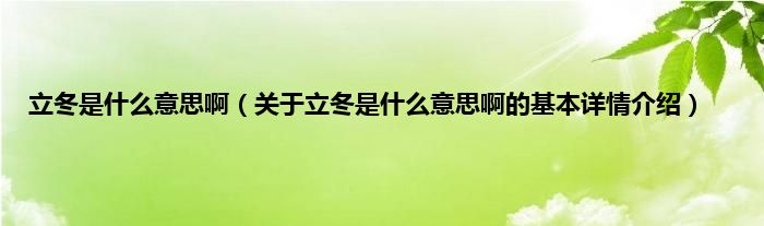 本文关于立冬是什么意思啊的基本详情介绍就讲解完毕,希望对大家有所帮助。