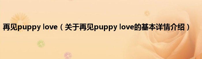 本文关于再见puppy love的基本详情介绍就讲解完毕,希望对大家有所帮助。