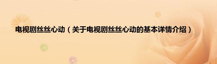 本文关于电视剧丝丝心动的基本详情介绍就讲解完毕,希望对大家有所帮助。