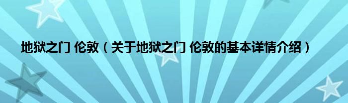 本文关于地狱之门 伦敦的基本详情介绍就讲解完毕,希望对大家有所帮助。