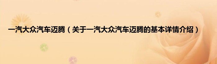 本文关于一汽大众汽车迈腾的基本详情介绍就讲解完毕,希望对大家有所帮助。