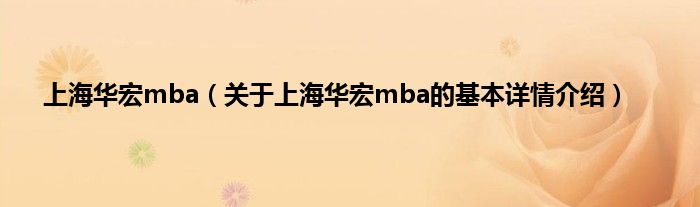 本文关于上海华宏mba的基本详情介绍就讲解完毕,希望对大家有所帮助。