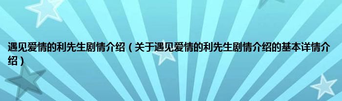本文关于遇见爱情的利先生剧情介绍的基本详情介绍就讲解完毕,希望对大家有所帮助。